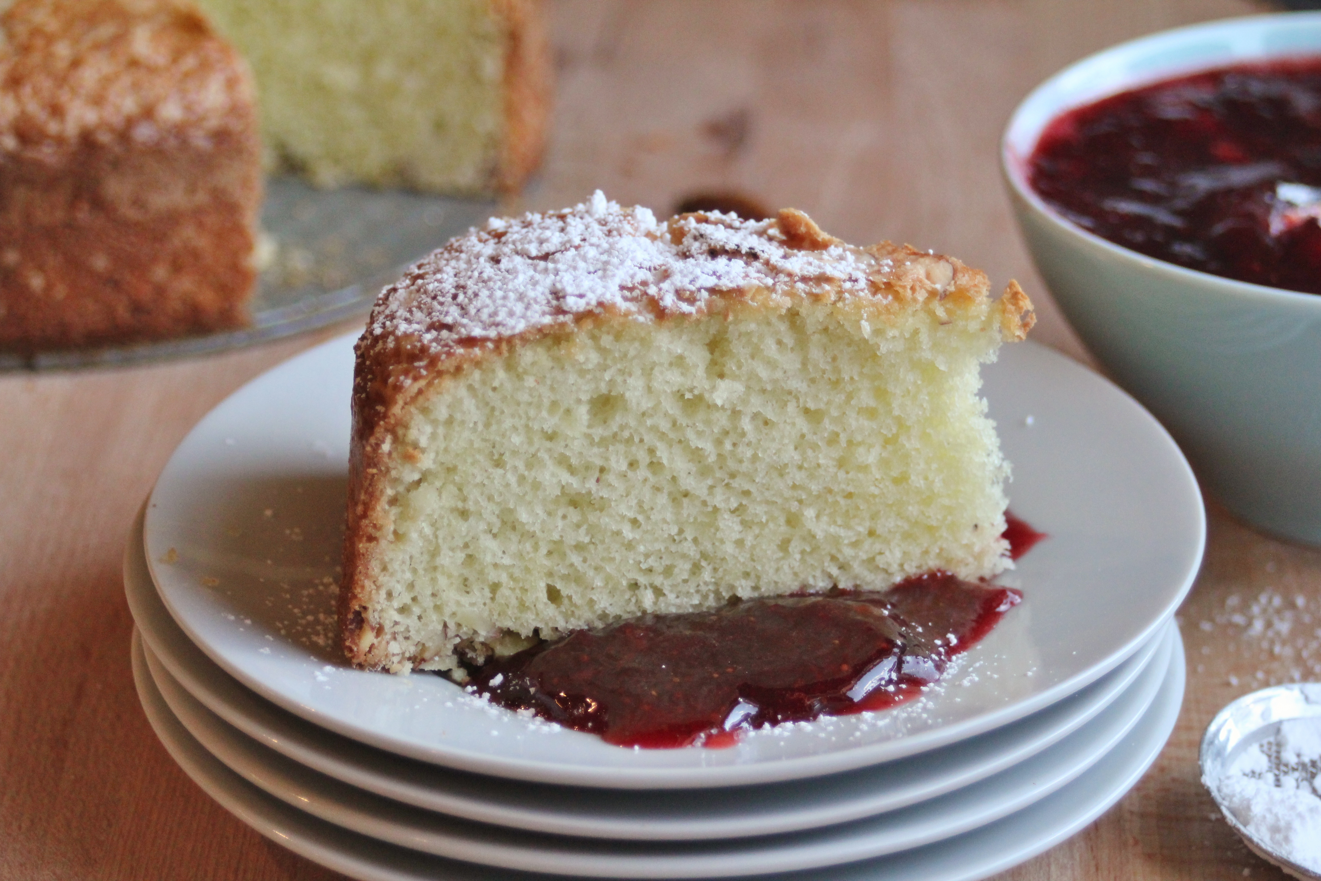 Using a 9″ springform pan makes baking the cake so simple. You’ll need to put it on a piece of foil or on a baking sheet to catch any leakage. If you do not own one, no big deal! Just use one 9″ round cake pan instead. This cake is so good, very delicate in flavor, and is the perfect canvas to show off your Strawberry Rose Compote. It’s texture reminded me of a chiffon cake with its lightly sponge-like crumb. It’s best served warm from the oven. If you have leftovers, I suggest tightly wrapping the cake in plastic wrap.