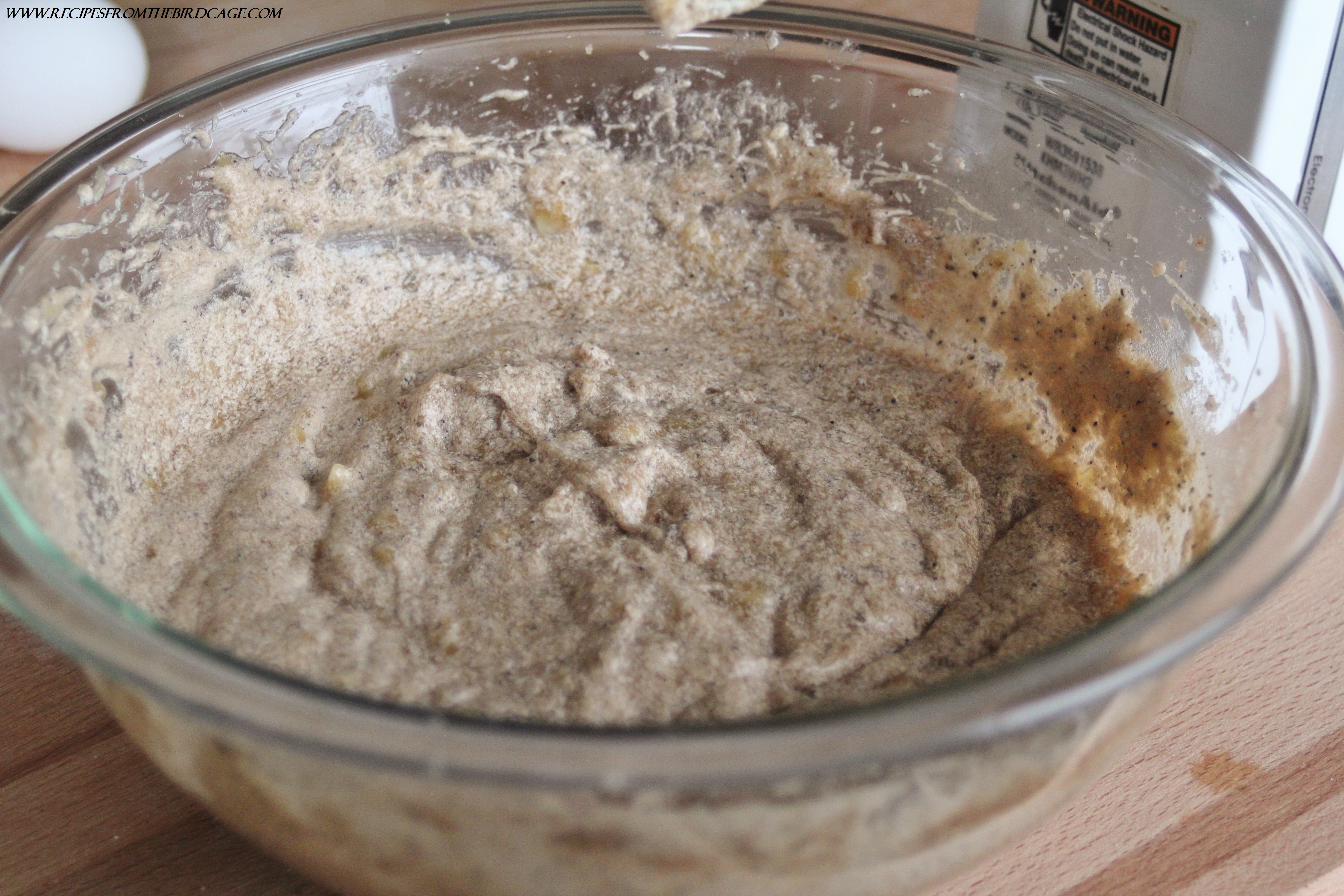 Oh! And I made this a “one bowl” recipe. Less dishes? Freaking awesome. You pretty much mix all the wet ingredients in a large mixing bowl then sprinkle the dry ingredients over. I also eliminated the traditional step of adding already mashed bananas to the quick bread dough and used the hand mixer to puree them into oblivion.