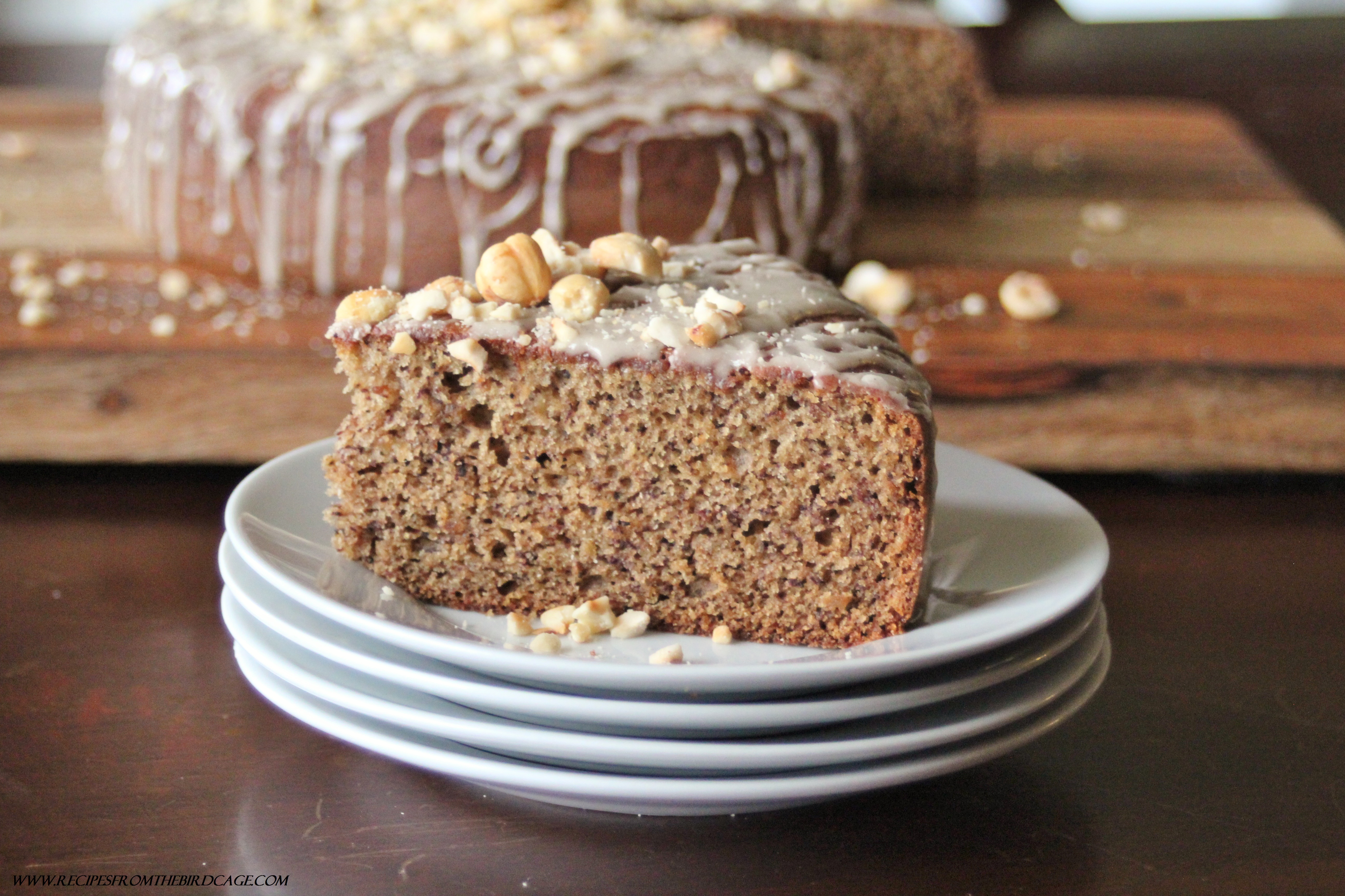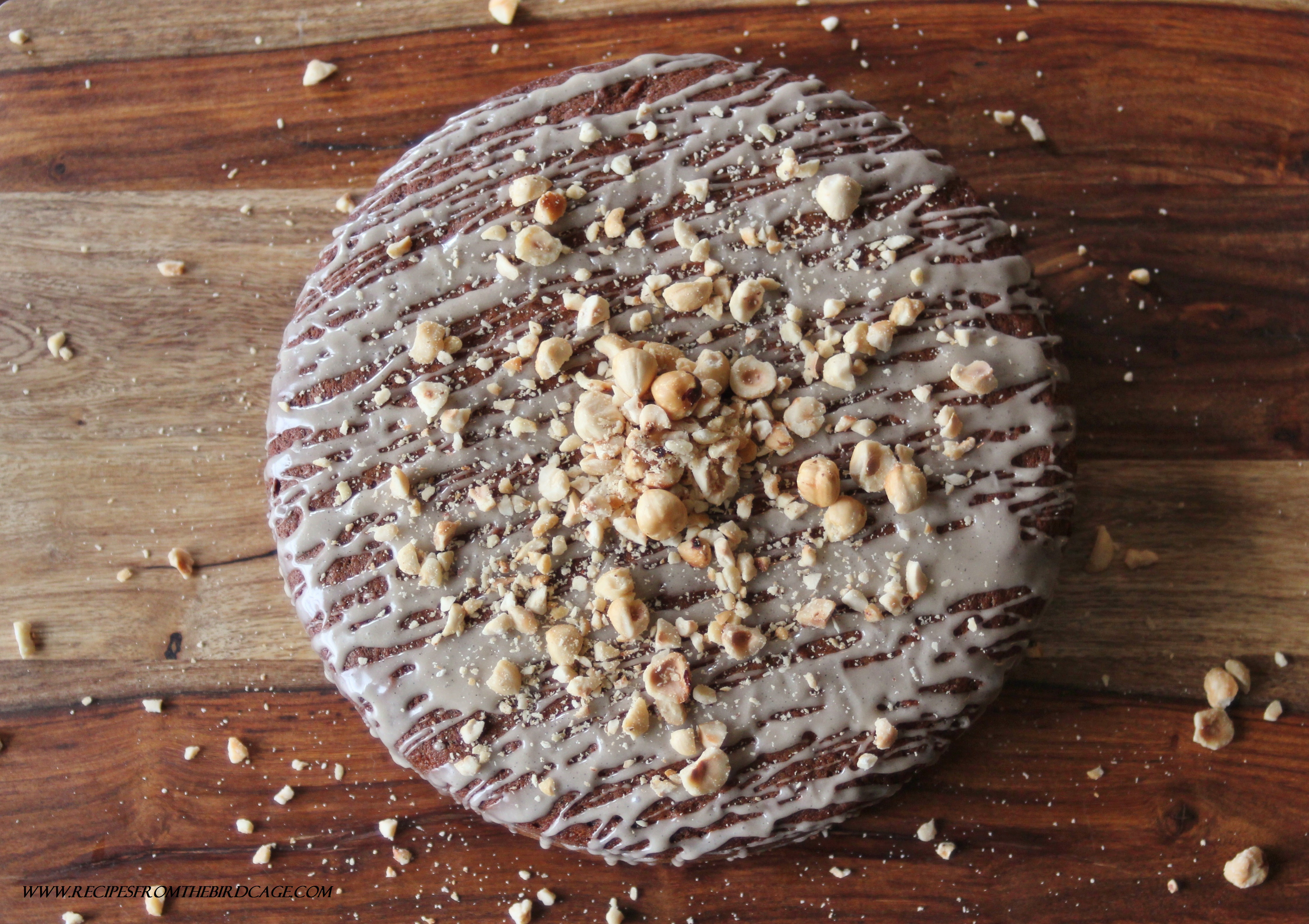 Furthermore, after the cake cooled, I drizzled it with an espresso glaze and topped it with some hazelnuts I’d roasted. This is purely an optional step. You could always mix in your nuts of choice (1/2 cup) into the dough.