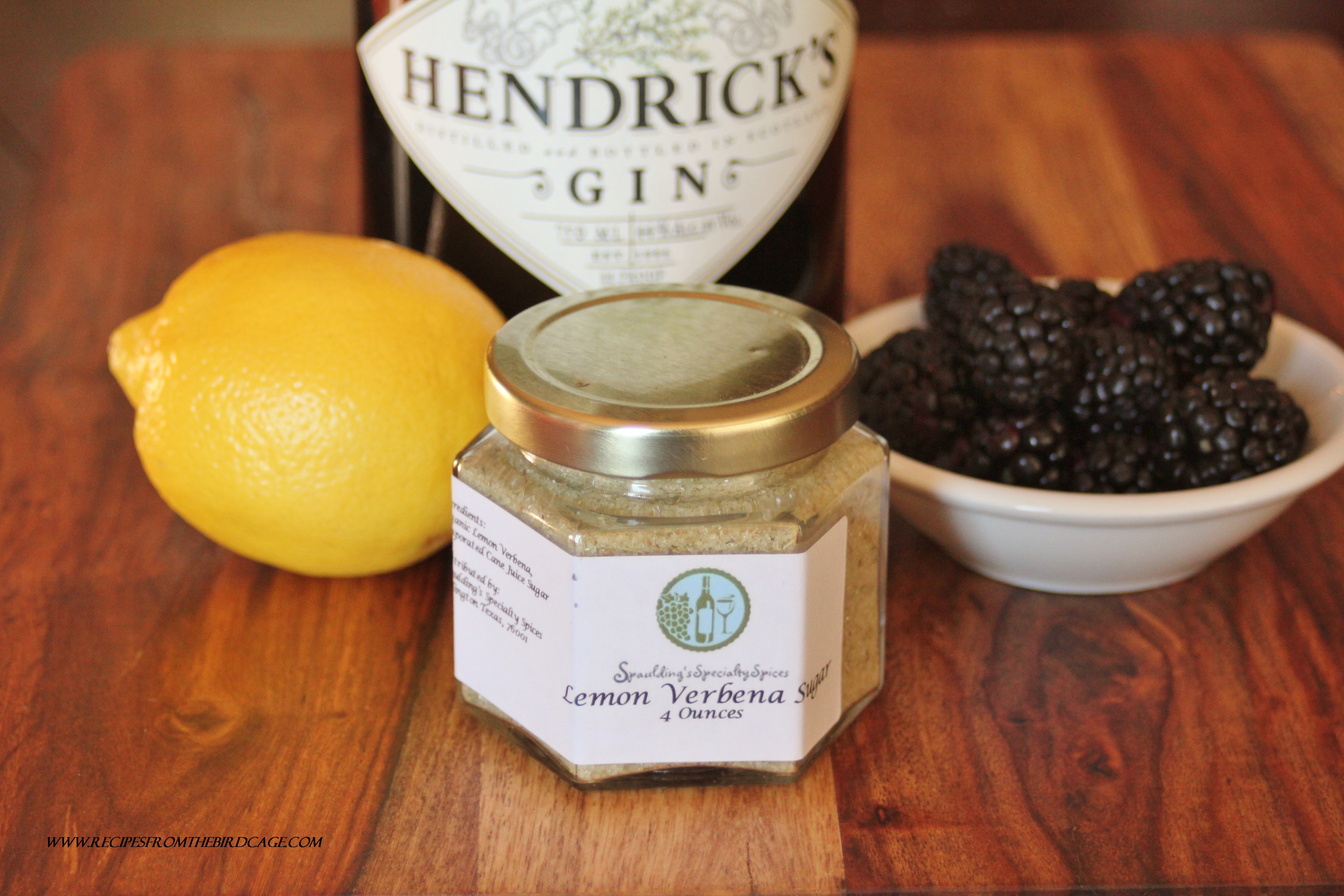 Blackberry Puree: 1 pint blackberries 2 T. water Directions: 1. In a small food processor (or blender), combine rinsed berries and water. Process until smooth. If desired, strain mixture to eliminate any seeds or large pulp. 2. Store puree in a small jar, refrigerated for up to two days, in the refrigerator. Lemon Verbena Simple Syrup: 1/2 cup white sugar (or 4 oz. jar of Spaulding’s Specialty Spices Lemon Verbena Sugar) 2 leaves lemon verbena (if using Lemon Verbena Sugar, omit) 1/2 cup filtered water Directions: 1. In small saucepan, bring 1/2 cup water to boil. 2. Stir in sugar and lemon verbena leaves (if using). Keep stirring until sugar has dissolved. 3. Immediately remove from heat and let steep for 15 minutes until cooled. Remove leaves. Store syrup in a jar, refrigerated. Cocktail Directions: Ingredients: 1 T. blackberry puree 1 T. lemon verbena simple syrup 1 ounce gin 4-5 ice cubes 4 ounces soda water, sparkling water, or club soda thin strip of lemon zest, about 3″ long Directions: 1. In a glass, combine blackberry puree, simple syrup, and gin. 2. Add ice cubes. 3. Stir in soda water. 4. Top with lemon zest strip. 5. Serve immediately. Blackberry Verbena Gin & Tonic