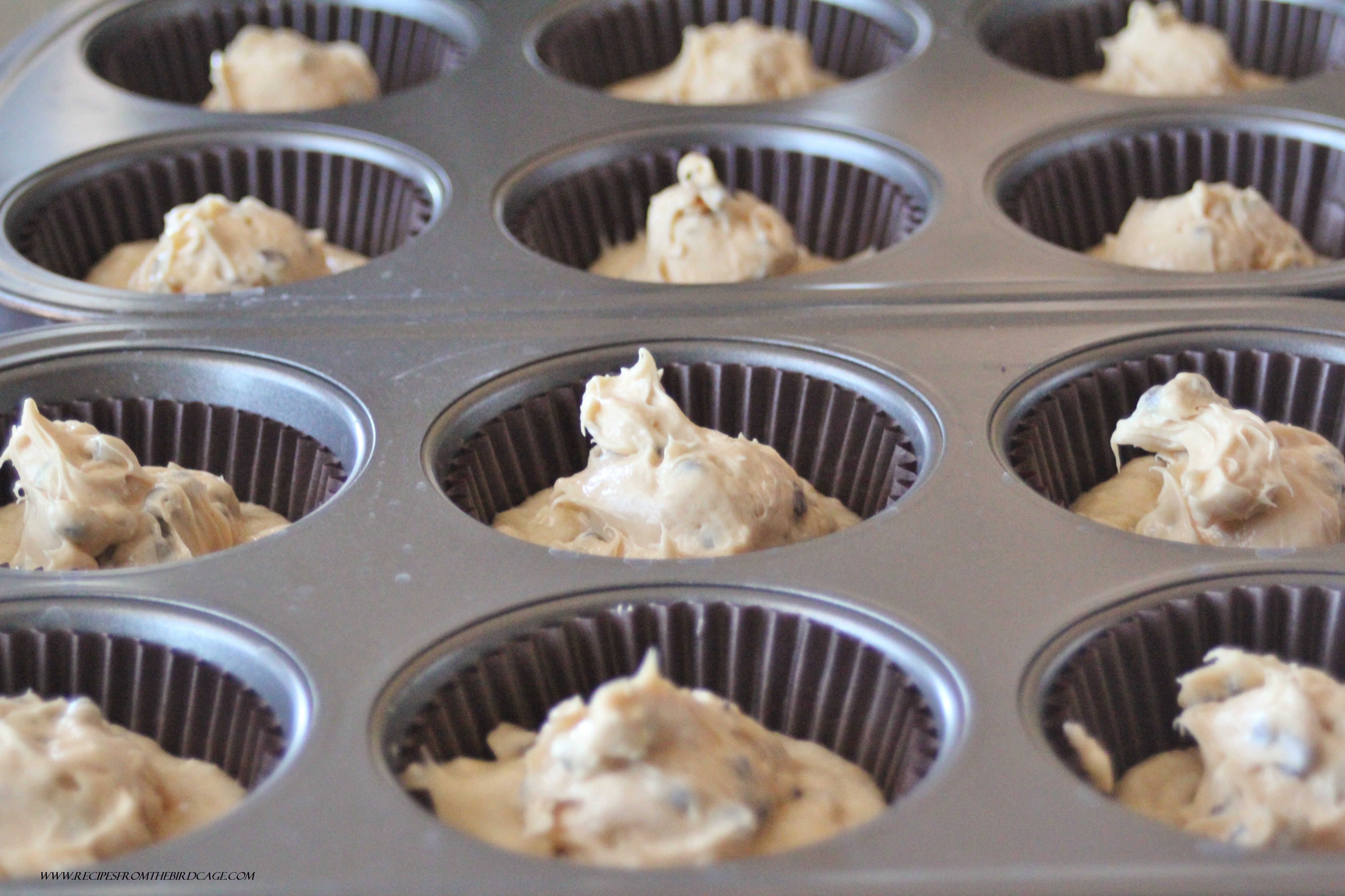 If you aren’t the best with piping frosting, give these babies a go. I simply filled my cupcake liners a little over half way full with the banana cake batter. I then used a small cookie scoop to plop about a heaping Tablespoon’s worth of peanut butter cheese cake into the center. Easy Peasy.