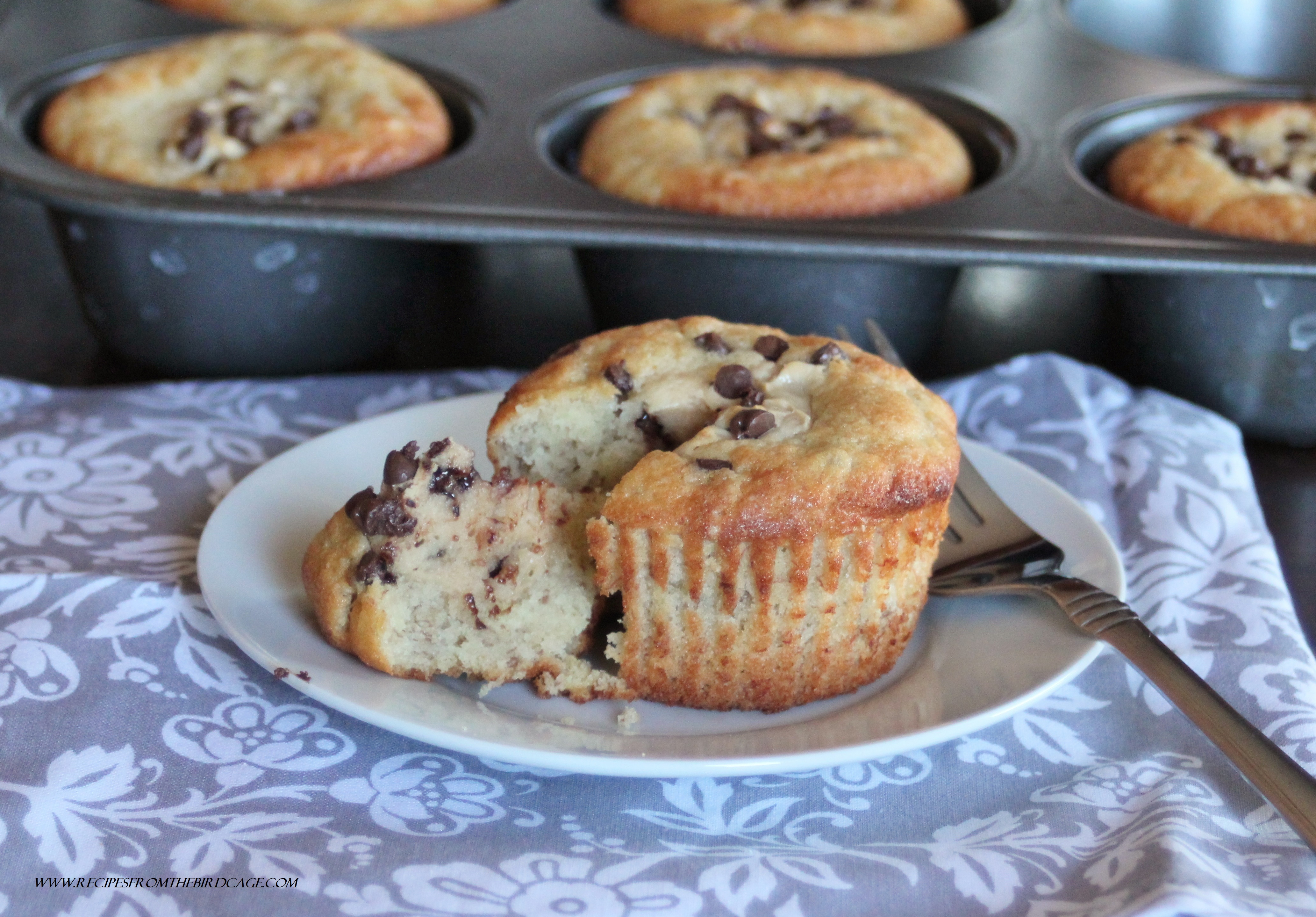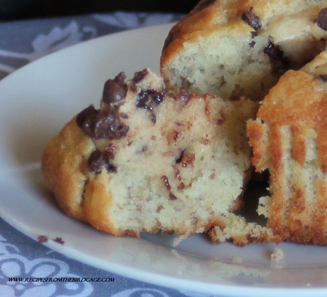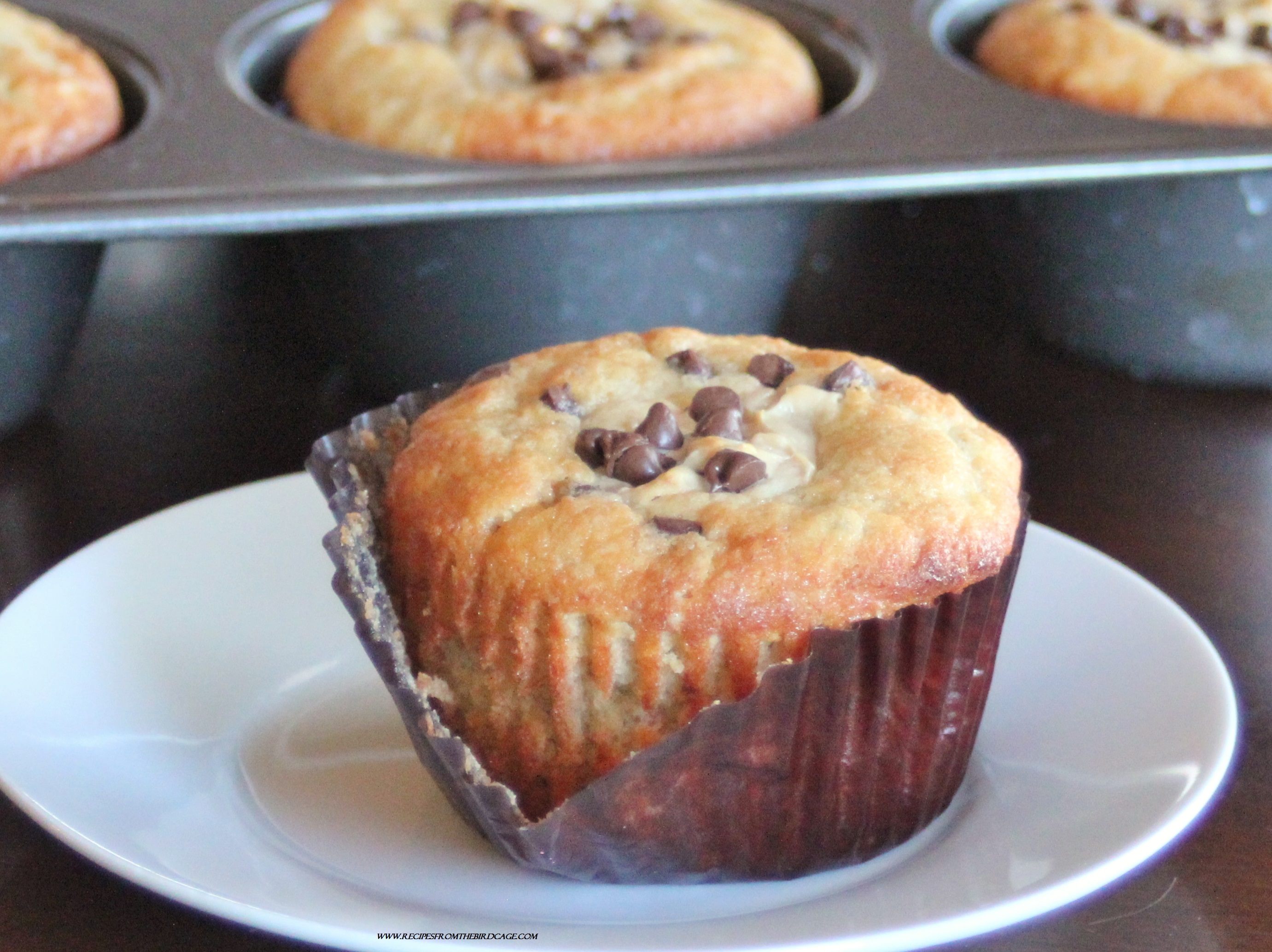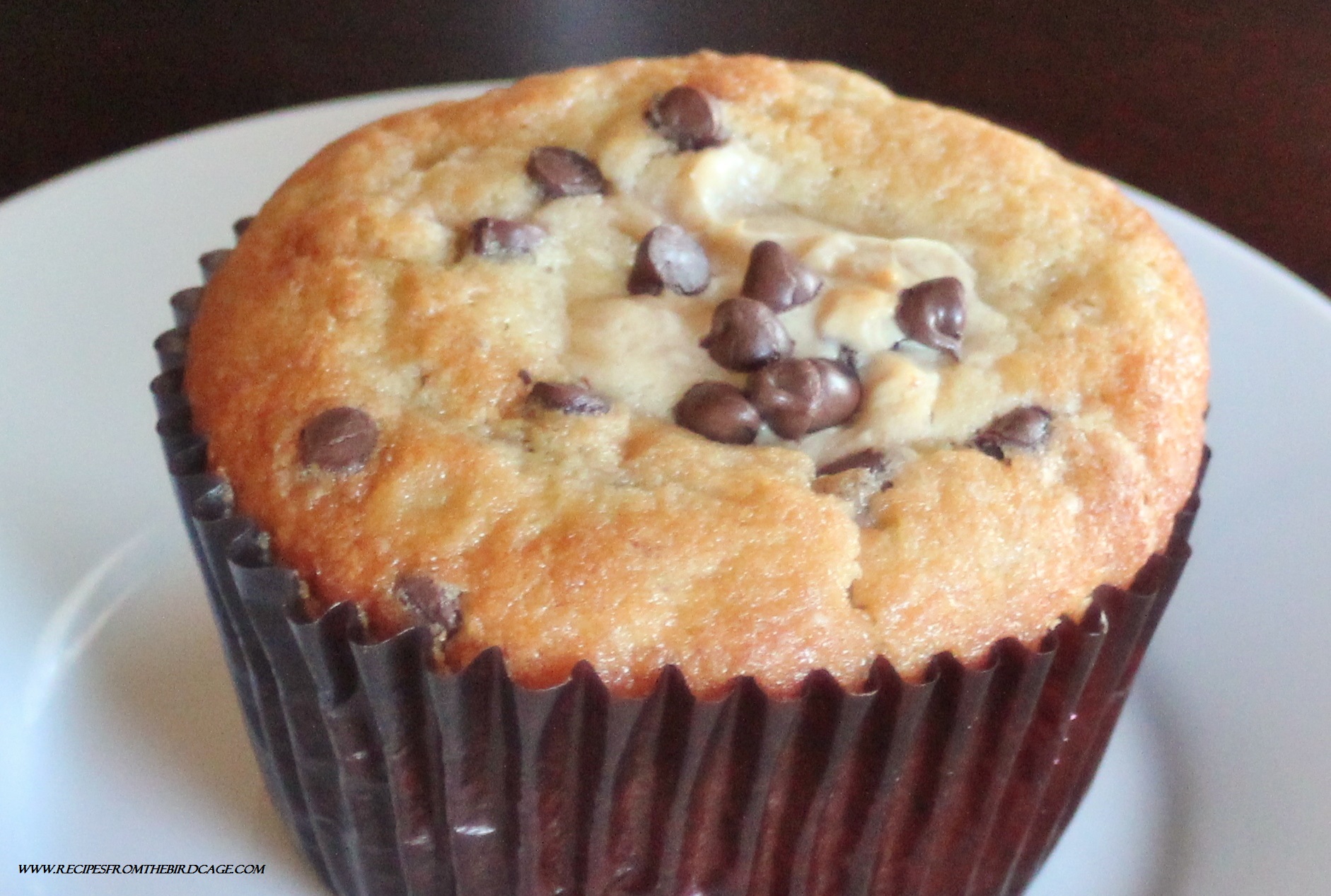 PEANUT BUTTER BANANA BOTTOM CUPCAKES makes 12 large cupcakes Ingredients: 3/4 cup unsalted butter, softened 1 1/2 cups sugar 3 eggs 1 tsp. vanilla extract 3/4 cup whole milk 1 cup mashed bananas (about 3 bananas) 2 1/2 cups all-purpose flour 1/2 tsp. salt 1/2 tsp. baking soda 1 tsp. baking powder 6 ounces cream cheese, softened 1/4 cup creamy peanut butter 1 egg 1/4 cup sugar 1/2 cup miniature chocolate chips Directions: 1. Preheat oven to 350 degrees. Line a 12 cavity cupcake pan with baking cups; set aside. 2. In a large bowl, cream together the softened butter and sugar until light pale and fluffy; this takes about 4-5 minutes. 3. Beat in eggs and vanilla until well incorporated. 4. In a separate bowl, mix together flour, salt, baking soda, and baking powder; stir these into the butter mixture. 5. Mix in the mashed bananas and milk until just combined. 6. In a separate bowl, cream together the cream cheese, peanut butter, egg, and sugar until thoroughly combined. Stir in the chocolate chips. 7. Fill each muffin pan cavity a little over halfway full with batter. Using a cookie scoop or Tablespoon, drop mounds of cream cheese mixture to the enter of each cavity. Do not let the cheesecake touch the sides of the pan. 8. Bake in a 350 degree oven for approximately 25 – 30 minutes (using a jumbo cupcake pan) until lightly browned on top and a toothpick inserted into cake portion comes out clean. 9. Store leftover cupcakes in the refrigerator. Peanut Butter Banana Bottom Cupcakes