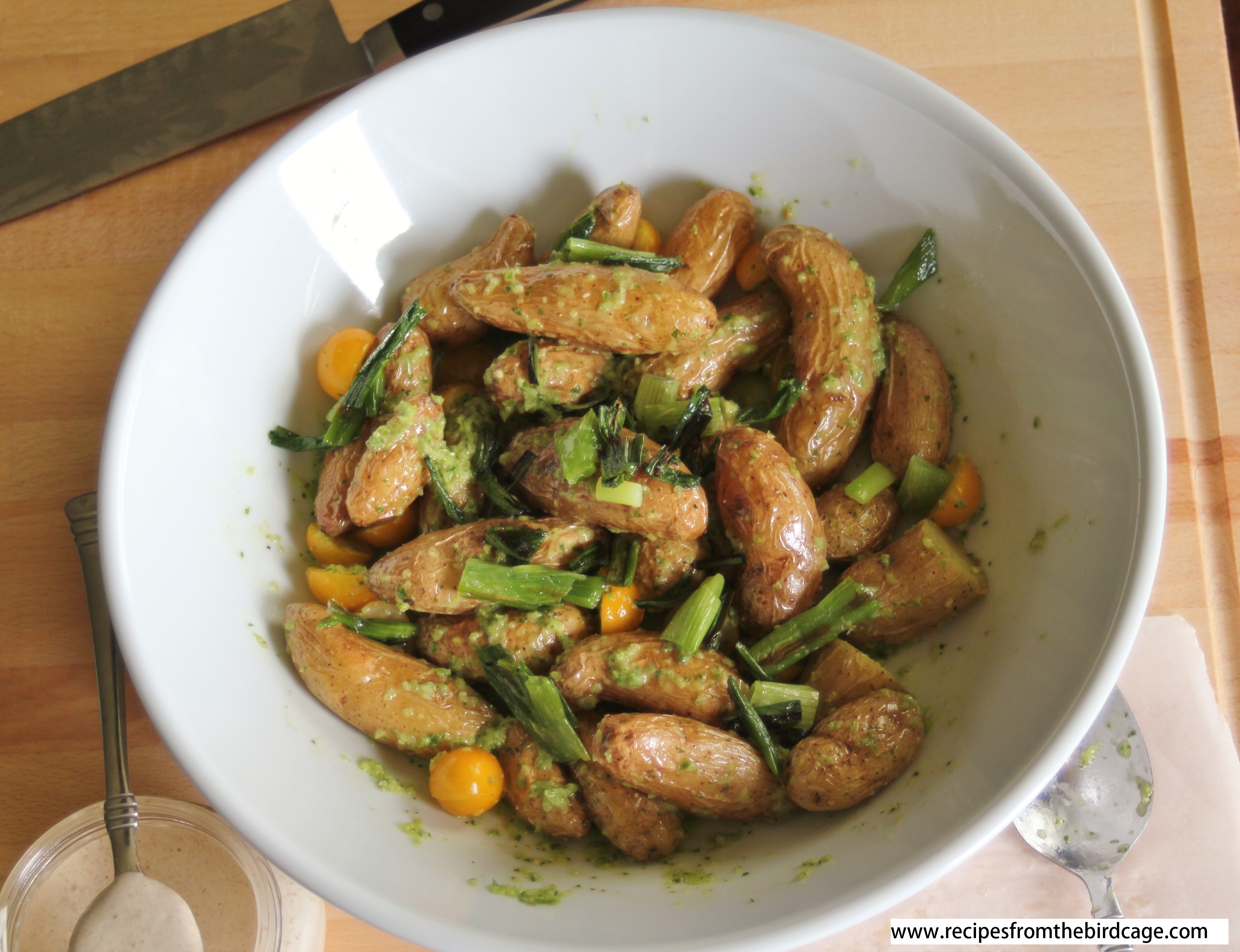 The cool thing about this potato salad is that it can be served hot, cold, or at room temp. It would make a great addition to grilled flank steak. We also enjoyed it with grilled Andouille sausage and as a filling for lettuce wraps with the addition of chickpeas for protein.