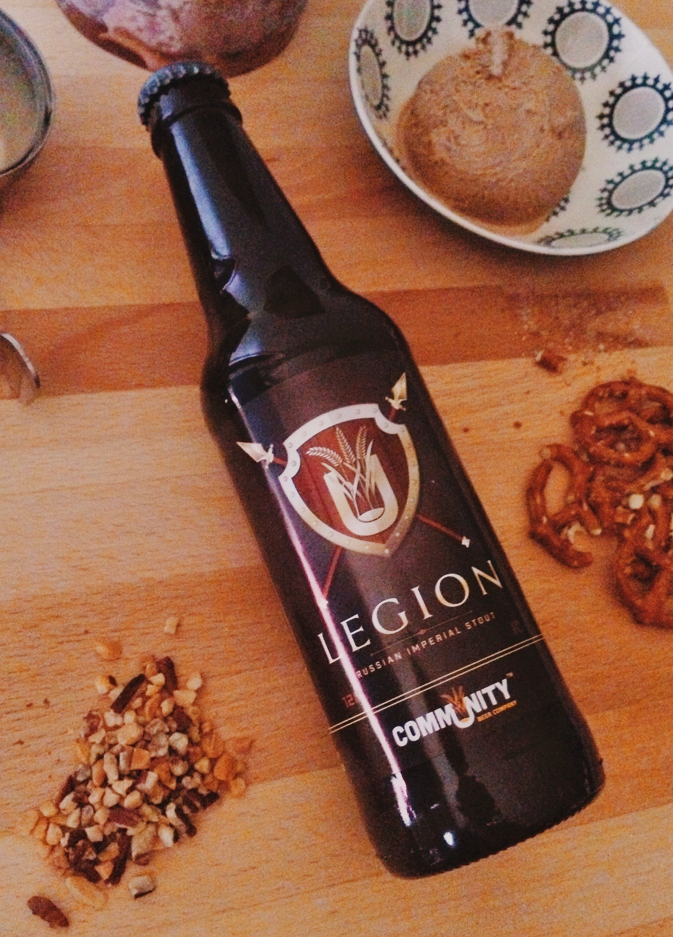 Smoked Imperial Stout Caramel = Imperial Stout was used because of its maltiness, creaminess, and “velvety mouthfeel” (which is what the back of the bottle said). The beer I used is from Community Beer, based out of North Texas, and was a Russian Imperial Stout called Legion. The smoke, of course, was inspired by the concept of a smoke-filled bar and I used a smoked, black sea salt I had purchased on my most recent trip out to LA. You can find it here, but any smoked sea salt will likely “work” in the caramel recipe.